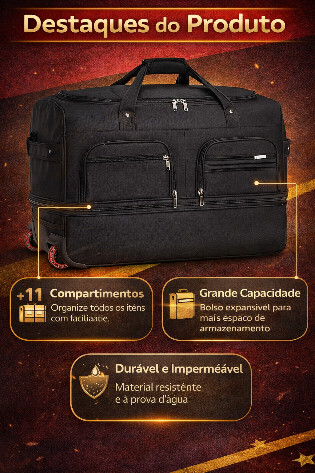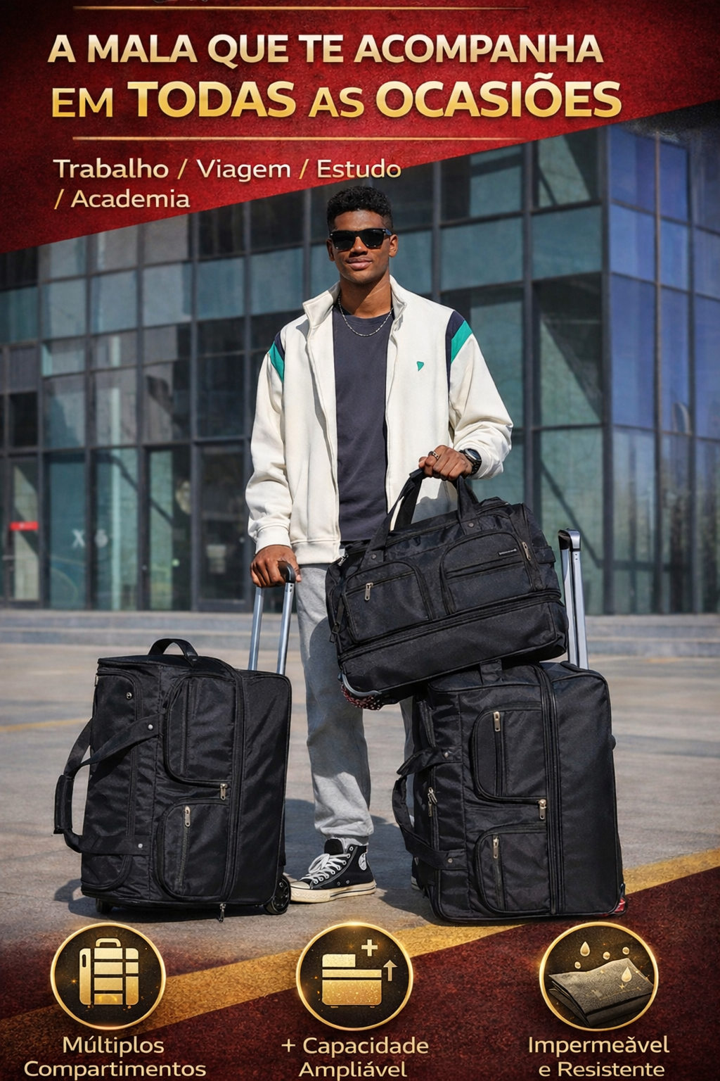 🧳 Mala de Viagem Grande com Rodas Triplas! Expansível e Resistente! 💪