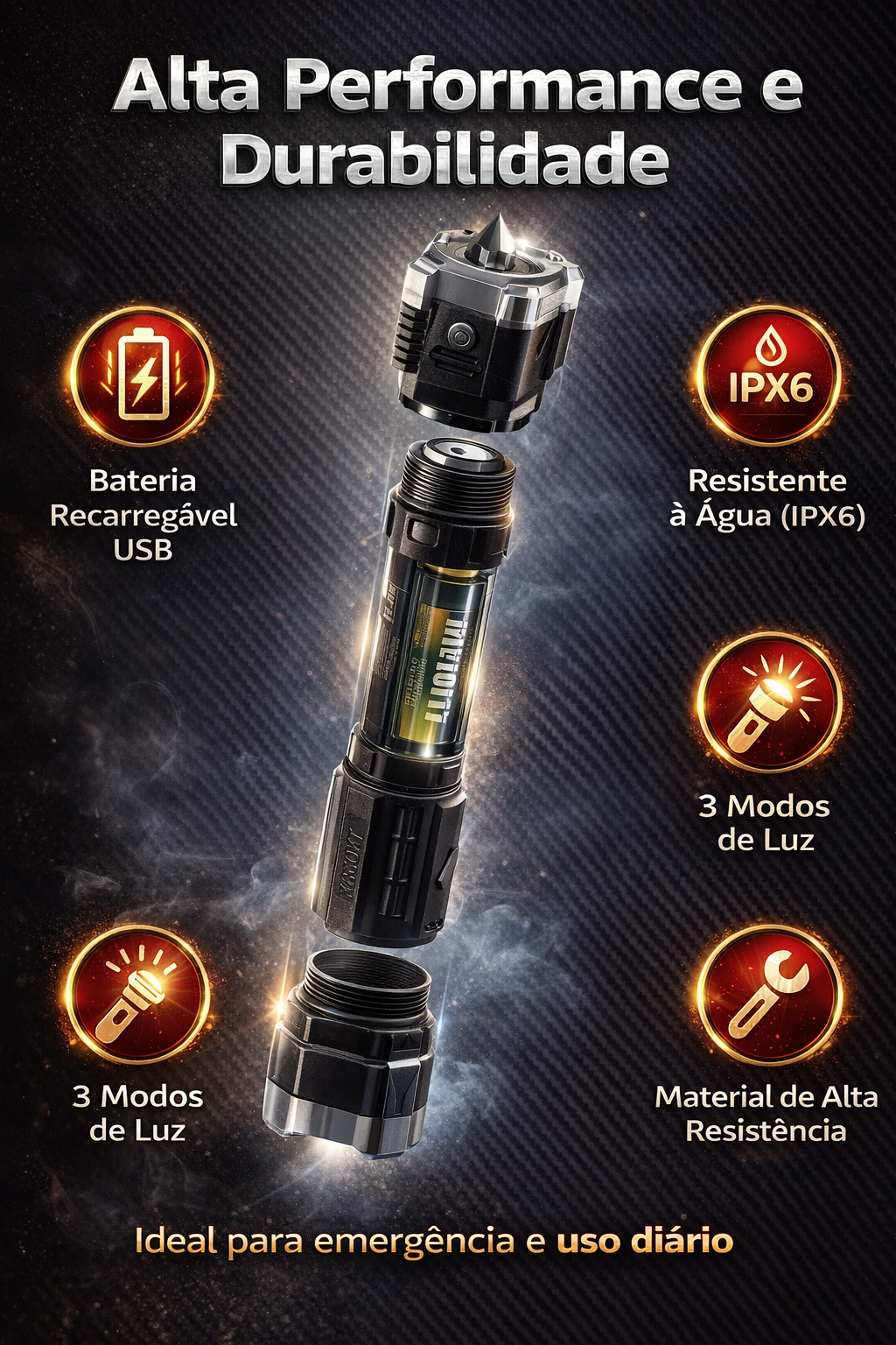 🚨 Protetor da segurança automóvel! Lanterna forte multifuncional | Martelo quebrador de vidros + Carregador portátil + Luz magnética, tudo em um